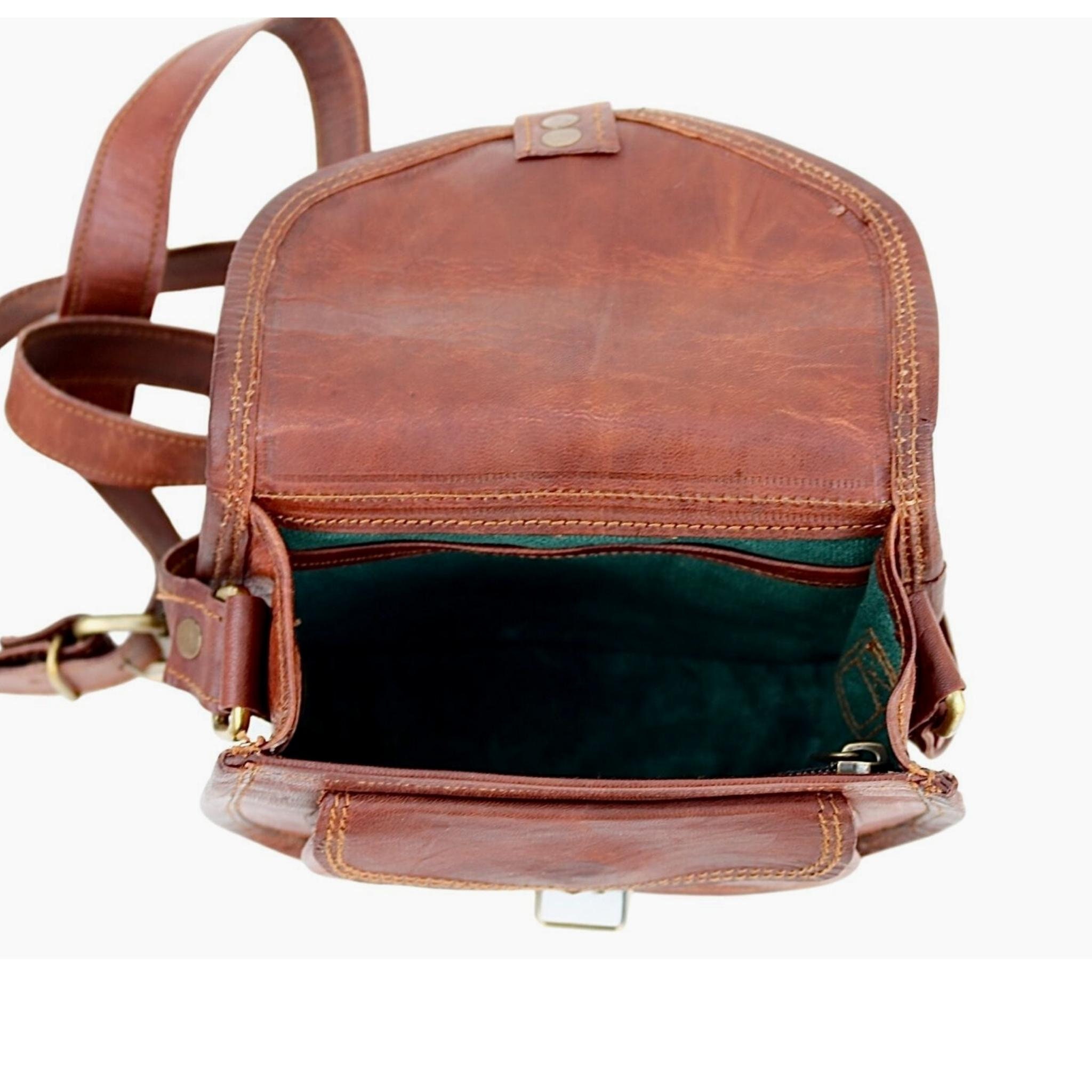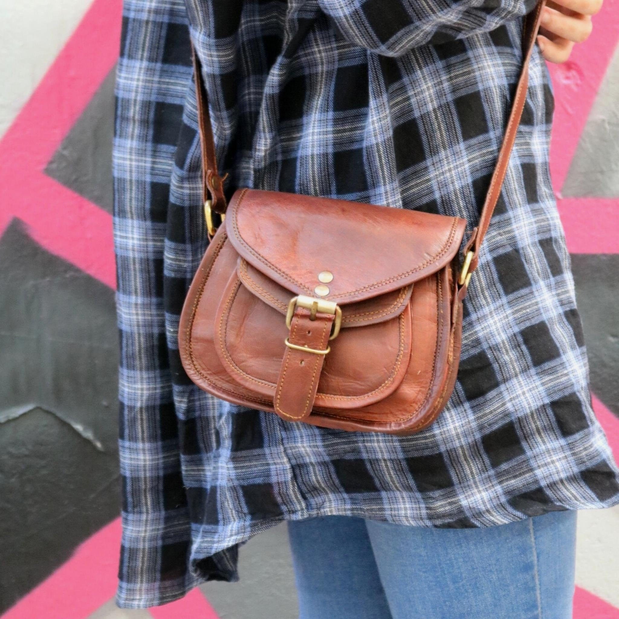 Lovely little bag that goes with everything. It's just big enough for a big purse and a phone, plus some small bits and bobs like a comb and chapstick. The quality and colour of the leather are just what I was looking for. Shipping was fast. Now my daughter wants a bag too... :)